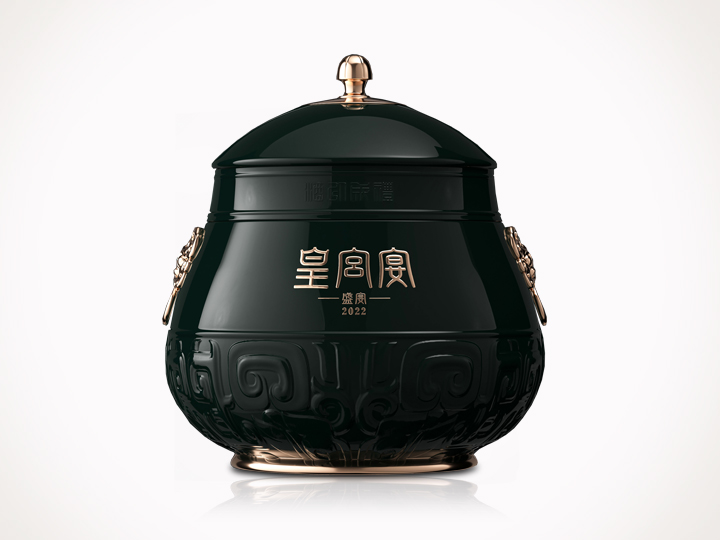 100道精湛,成就高端。其器型外观延续了皇宫宴·礼中国樽的古朴典雅,整体以墨翠釉色为主调,端庄大气,再现周朝礼仪之风范。